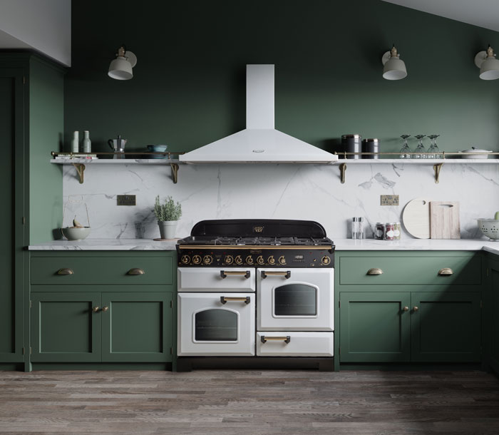 No matter how small or large your kitchen, there’s a Classic Deluxe cooker to suit with 90cm, 100cm and 110cm widths to choose from. There’s also a distinctive colour palette with twelve shades to complement or contrast your kitchen cabinets and two trim options. Take your pick from the more traditional Cranberry, Black or Cream or make a statement with Slate, Olive Green, Regal Blue, Racing Green, White or Royal Pearl.