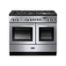 A great choice for modern or traditional kitchens, the Professional + 100 FX range cooker features easy-access drop down doors with a colour matched fascia for a co-ordinated look. The dual fuel design is available in a classic colour palette of Black, Slate or Stainless Steel with durable rotary controls and handles. The easy-clean enamel multifunction ovens offer plenty of cooking space while a full width storage drawer is handy for keeping baking trays within easy reach. The five-burner gas hob is fully flexible with a wok cradle for healthy stir-fries while the griddle is perfect for steak, seafood, vegetables and more.